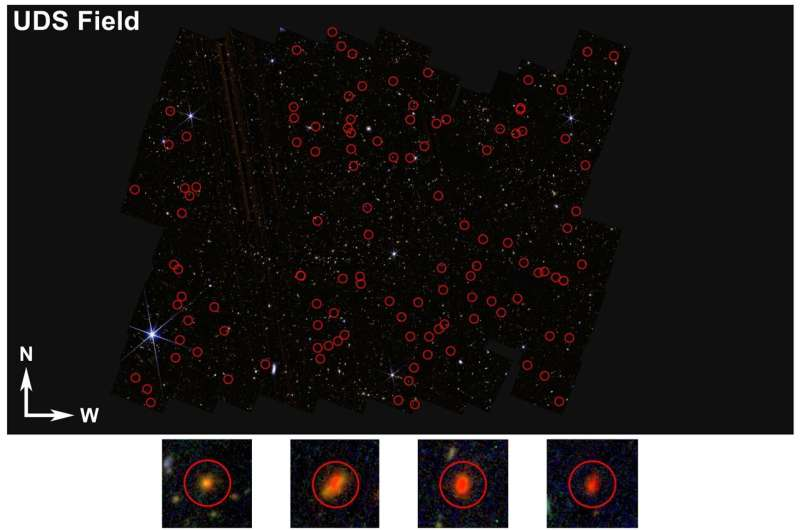 Банчжэн Сунь и др., «Об очень ярких объектах, выбранных с помощью прибора NIRCam космического телескопа Джеймса Уэбба», The Astrophysical Journal (2025). DOI: 10.3847/1538-4357/addbe0
