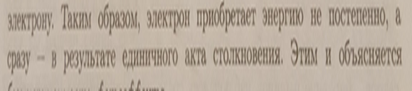 электрон приобретает энергию сразу в результате единичного столкновения, то результат этого столкновения зависит от времени этого столкновения, и того, в какой фазе квант находится в момент этого столкновения.