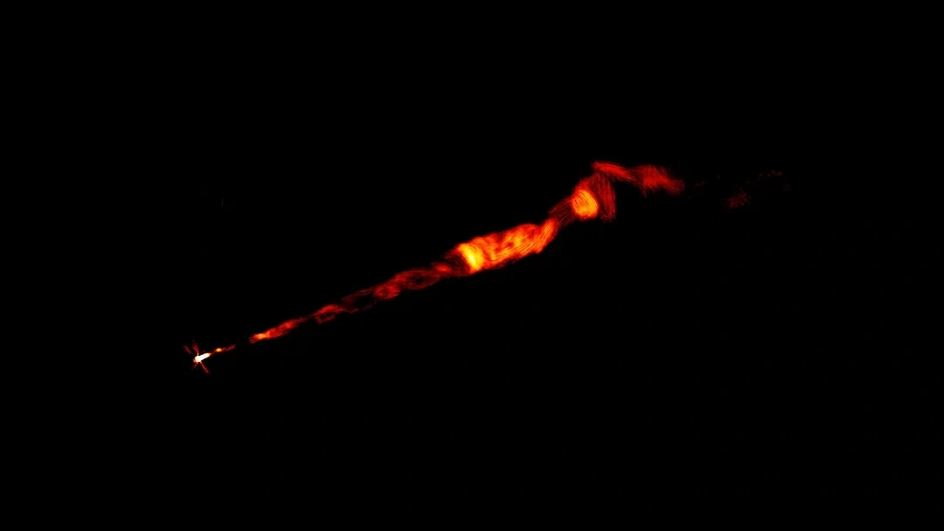 Джет — струя субатомных частиц, вылетающая из черной дыры, — несется через космос почти со скоростью света и растягивается на 8000 световых лет. Предыдущие радионаблюдения показали, что струя имеет форму двойной спирали, но ее структура в инфракрасном диапазоне оставалась загадкой. Новые инфракрасные изображения впервые показали четкую структуру загадочного контр-джета — мощного потока вещества, которое извергается в противоположном направлении от основной струи.