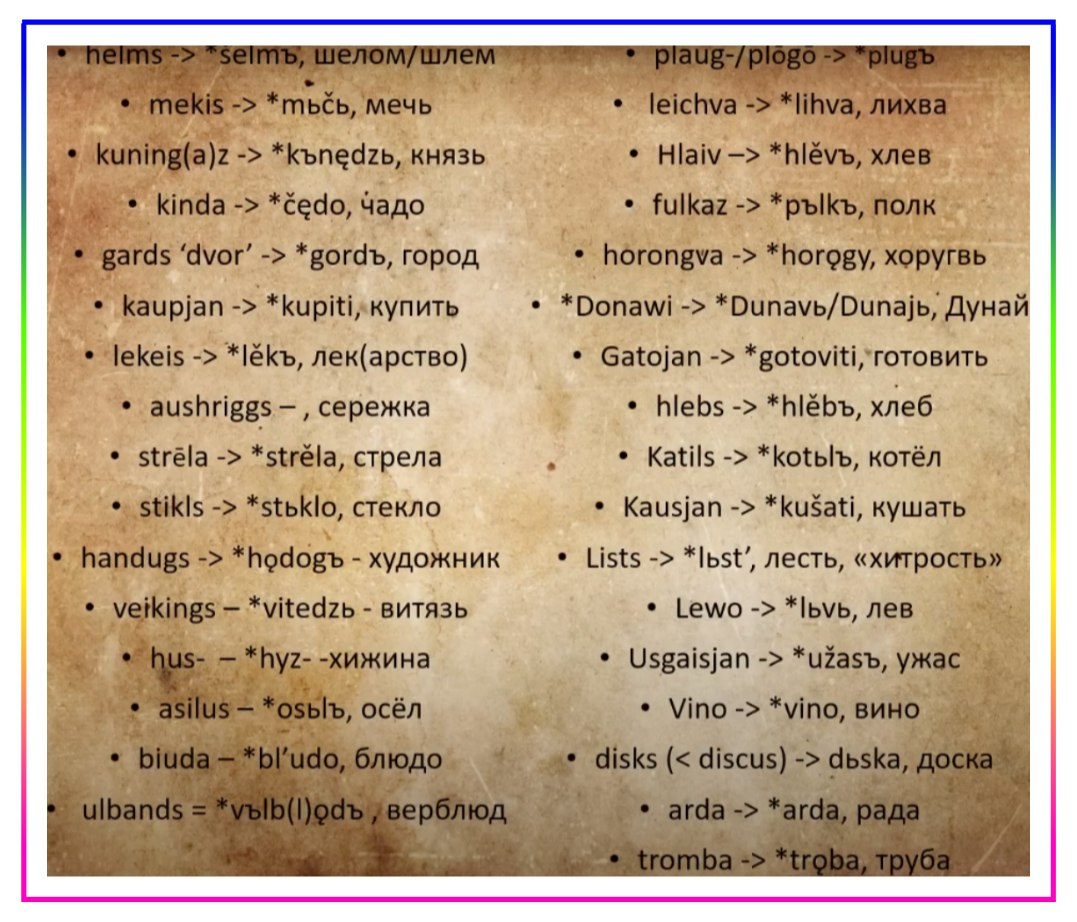 Готские заимствования в славянских языках. Источник: YouTube-канал Slaweniska dela, Wikipedia