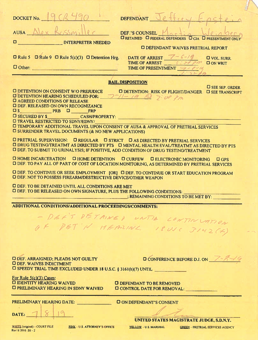 Федеральные документы об отказе Эпштейну в освобождении под залог