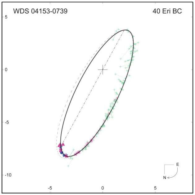 Предыдущие расчеты орбит компонент системы 40 Эридана BC привели к расхождению между значениями массы белого карлика, измеренными соответственно по его орбитальному движению и по методу гравитационного красного смещения.